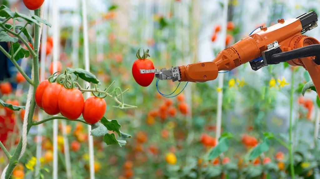 تقوم الروبوتات التي تعمل بالذكاء الاصطناعي باختيار التوت والفواكه بعناية: حيث تقوم الكاميرات بتقييم النضج، ويقوم المتلاعبون بنزع الفاكهة وإرسالها إلى الحاوية. هناك آلات مجهزة بستة عشر ذراعًا يمكنها قطف التوت لمدة عشرين ساعة يوميًا، لتحل محل فريق كامل. تذكرنا الدفيئات الزراعية التي تعمل فيها هذه الأجهزة على مدار الساعة بالدفيئات الفضائية: يتعين على الشخص فقط زرع بذرة ومراقبة جدول الحصاد.