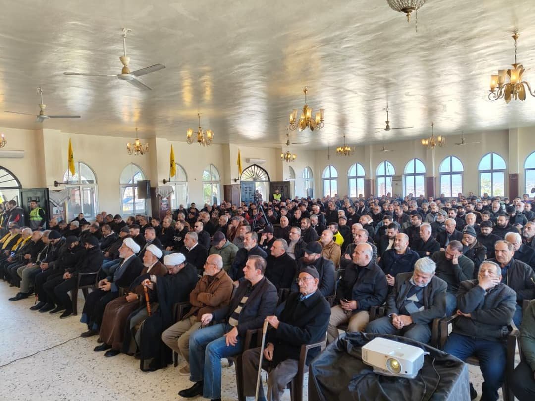 استُهلّ الاحتفال بتلاوة آياتٍ من القرآن الكريم، ثم ألقى جشي كلمة “حزب الله”، شدد فيها على أن “ضمانة الحفاظ على لبنان وسيادته هي تمسك اللبنانيين بوحدتهم في مواجهة العدو الصهيوني الطامع في أرضنا ومياهنا وثرواتنا، وأن الخلاف بين اللبنانيين يشجّع العدو على الاستمرار في احتلاله وعدوانه”، معتبراً أن “المطلوب هو وحدة الموقف تجاه العدو بعدما نفّذ لبنان كل ما هو مطلوب منه في اتفاق وقف إطلاق النار، والتمسك بكل الإمكانات المتاحة والاحتفاظ بأسباب القوة التي بين أيدينا ومنها المقاومة التي تشرّعها كل القوانين الدولية والشرائع السماوية للدفاع عن الأرض والعرض والكرامة وخاصة في ظل البلطجة الأميركية والإجرام والتوحش الصهيوني غير المسبوق، في حين أن كل التهديد والتهويل من الخارج والداخل لا ينفع معنا، لأننا قوم أباة لا نخضع للعدو مهما بلغت تضحيات”.