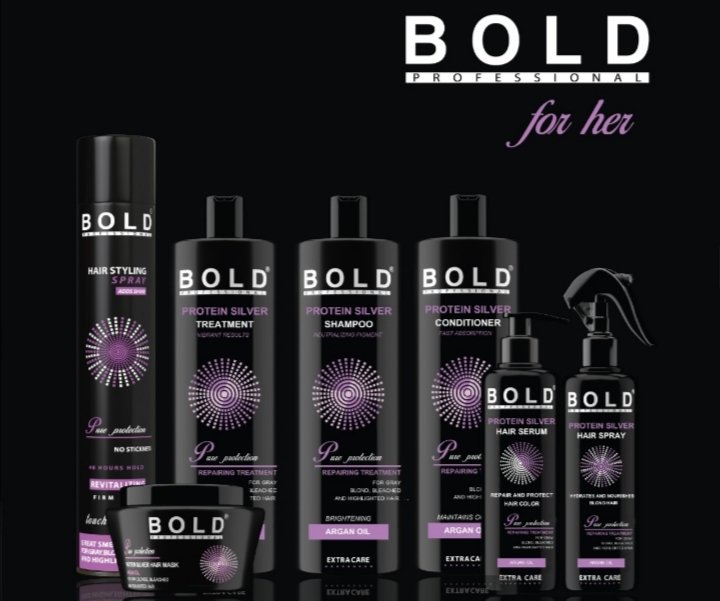 “Bold Silver Protein Treatment Collection” هي مجموعة خاصة للعناية بالشعر الأشقر والرمادي تتضمن شامبو ،بلسم، ماسك ،سبيراي،سبيراي hair styling ،سيروم، وعلاج البروتين.